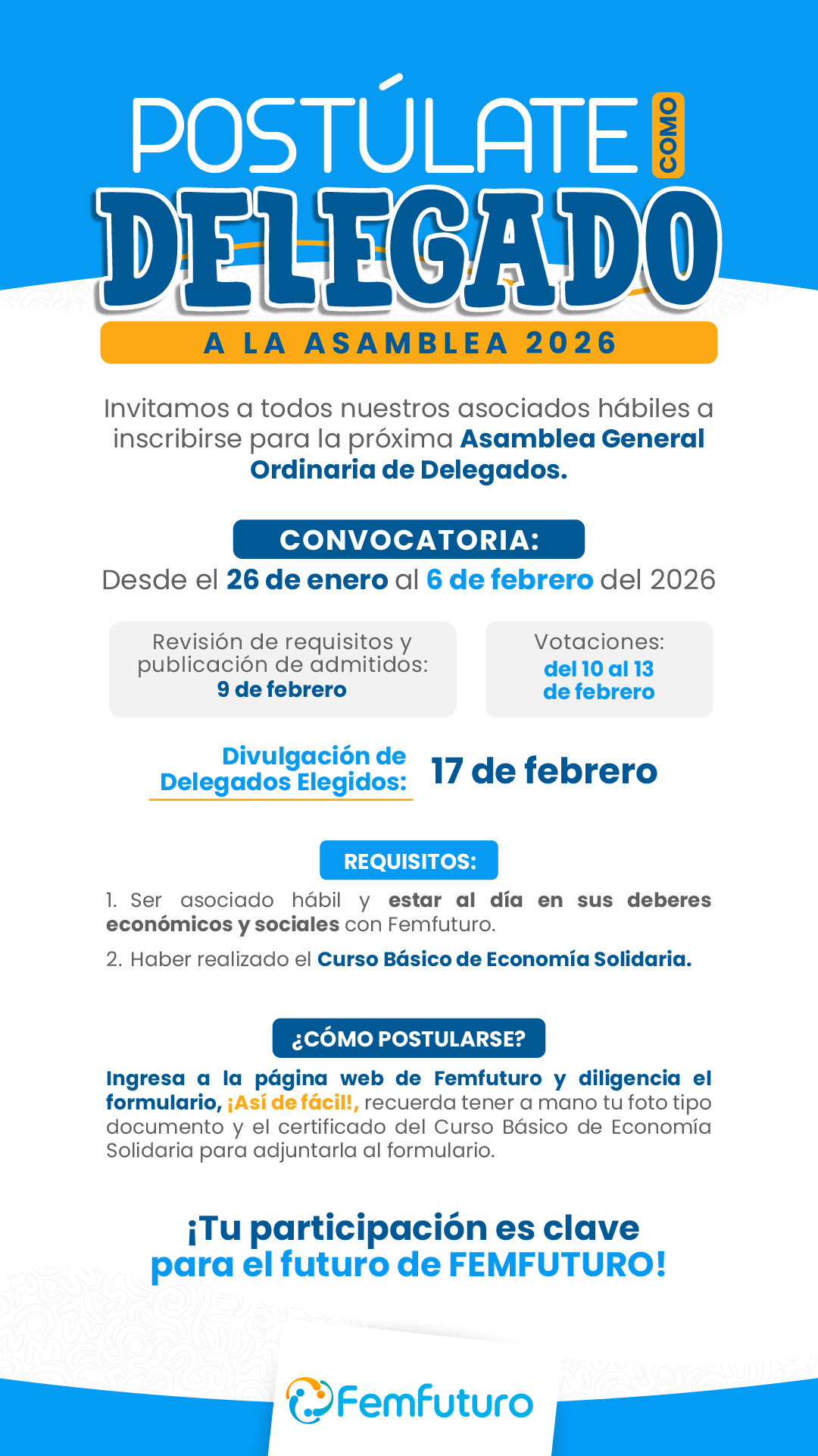 POSTÚLATE COMO DELEGADO 2026 - 2028